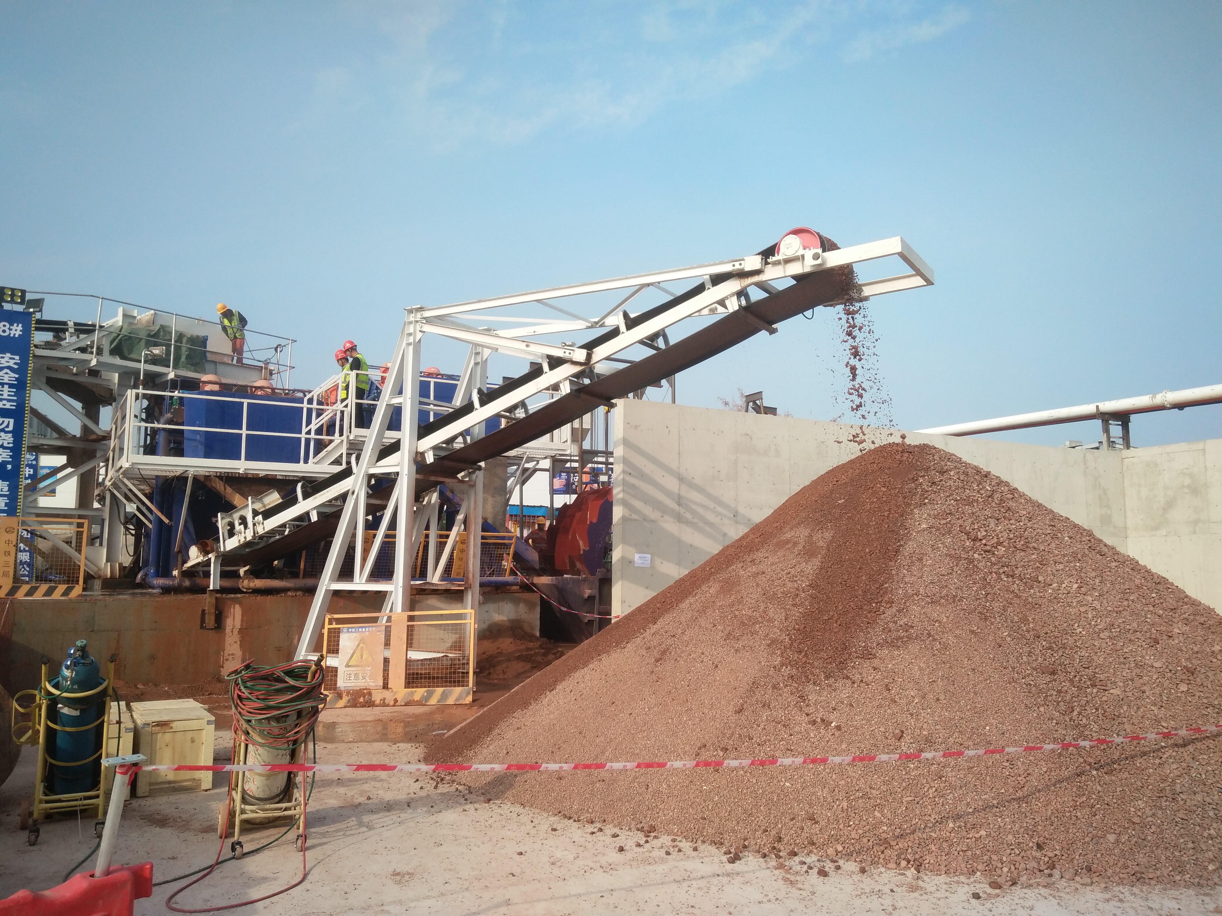 科迅的渣土環保處理系統利用皮帶機系統將剛掘出的渣土,從隧道深處運輸至地面渣土分離系統的進料斗,最后分離的粗砂細沙,通過拉升皮帶機輸送至卡車運輸,將渣土分級脫水分離和干化,實現無機原料、水資源再利用實現了渣土回收再利用,還產生了很好的經濟效益,為綠色施工、城市基建增添新“法寶”。